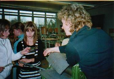 Eine Kunststunde der besonderen Art erlebten unlängst sieben Schülerinnen und Schüler der 6a aus der Grunschule Finow. Josephine, Dana-Michaela, Vanessa, Laura, Vivien, Klaudia und Tobias fertigten im Gymnasium Finow am Nachmittag eine Druckgrafik an. In gemütlicher Runde mit Keksen und Kiba-Saft kamen sie schnell mit den drei Kunstlehrerinnen ins Gespräch, dabei erhielten sie viele Anregungen für die Ideenskizzen und machten sich mit Eifer an die Arbeit: Bald fuhren Schlitten durch verschneite Landschaften, suchten Hirsch und Hasenfutter, lagen Geschänke unterm Weihnachtsbaum oder das Pferd auf der Koppel wollte eine Streicheleinheit. Anschließend wurde mit dem Spezialwerkzeug - der Radiernadel gearbeitet. Nach Fertigstellung des Druckstocks begann die anstrengende Druckarbeit, aber bald präsentierten alle stolz ihre gelungenen Radierungen. Diese Schnupperstunde hatte Frau Breuning, Leiterin der Fachkonferenz Kunst, gemeinsam mit ihren Kolleginnen organisiert. Im Rahmen des im Frühling zwischen beiden Schulen unterzeichneten Kooperationsvertrags konnten die Sechstklässler Einblick in die künstlerische Arbeit erhalten. Geplant sind in diesem Schuljahr noch weitere Besuche der Grundschüler im Gymnasium: Demnächst werden sie im Englischunterricht hospitieren und an einem Nachmittag Gelegenheit haben, die möglichen zweiten Fremdsprachen Französisch oder Spanisch kennen zu lernen. So wird es den Sechstklässlern sicher leichter fallen, eine Entscheidung zu treffen, wenn die Zulassung für den Besuch des Gymnasiums ab Klasse 7 erflogt.